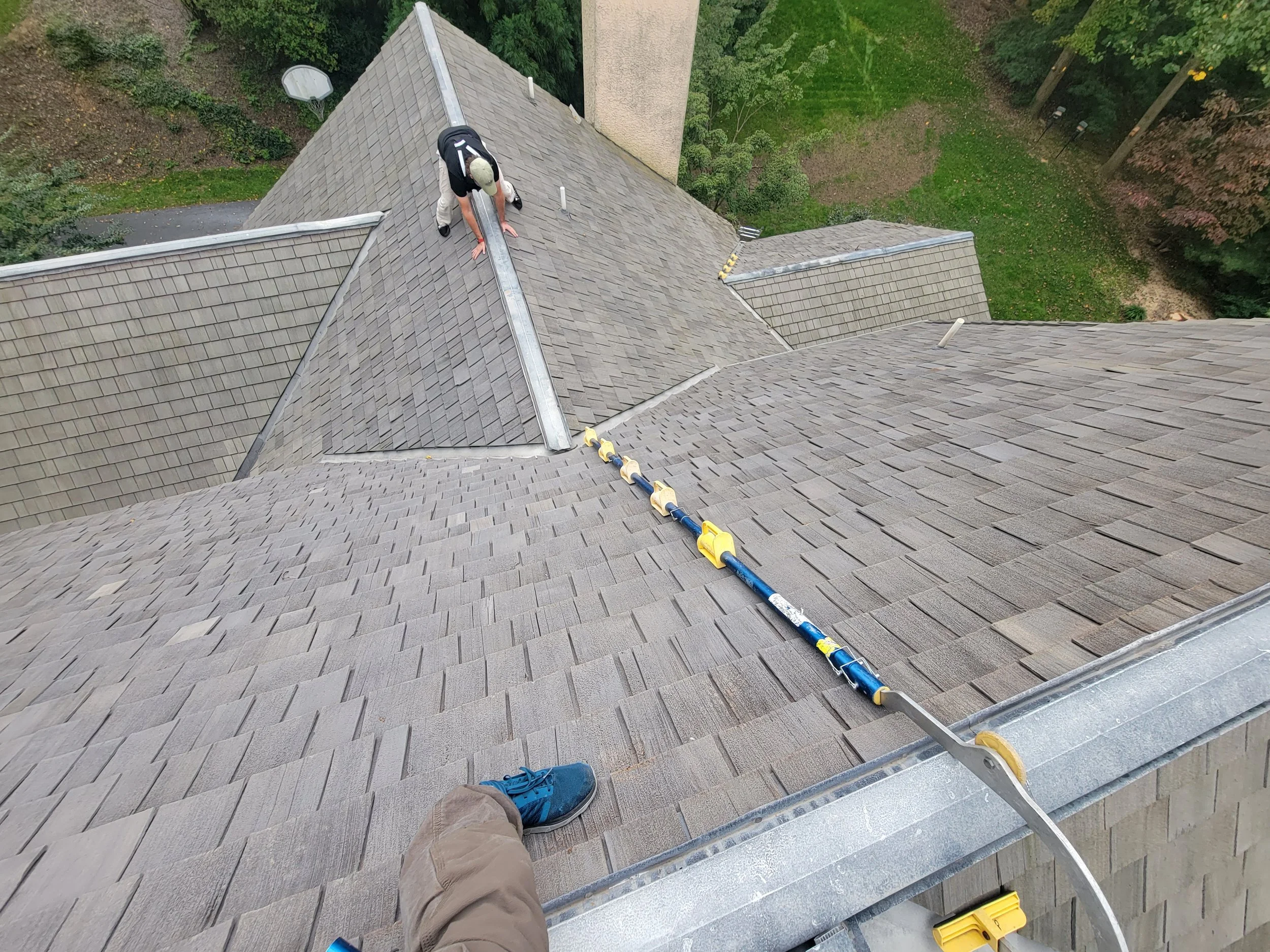 We remove the emergency tarp and patches for inspection purposes and replace the covering similarly to how it was originally installed.